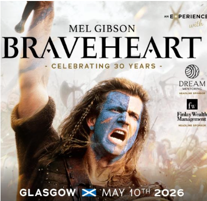 Mel Gibson Live 30th anniversary Braveheart at Black Tie VIP event Double Tree Hilton Hotel Glasgow 10 May 2026 Enquire Now